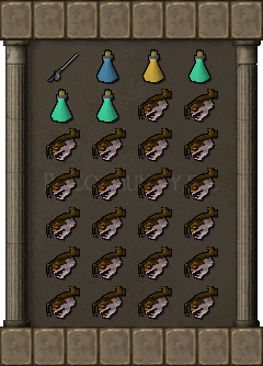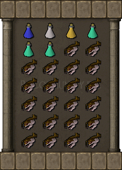 Es ist empfohlen gegen alle drei Kampfarten vorbereitet zu sein. Das Inventar sollte aus hochstufige Nahrung, Fertigkeitssteigernden Tränken und Gebetstränken bestehen.
